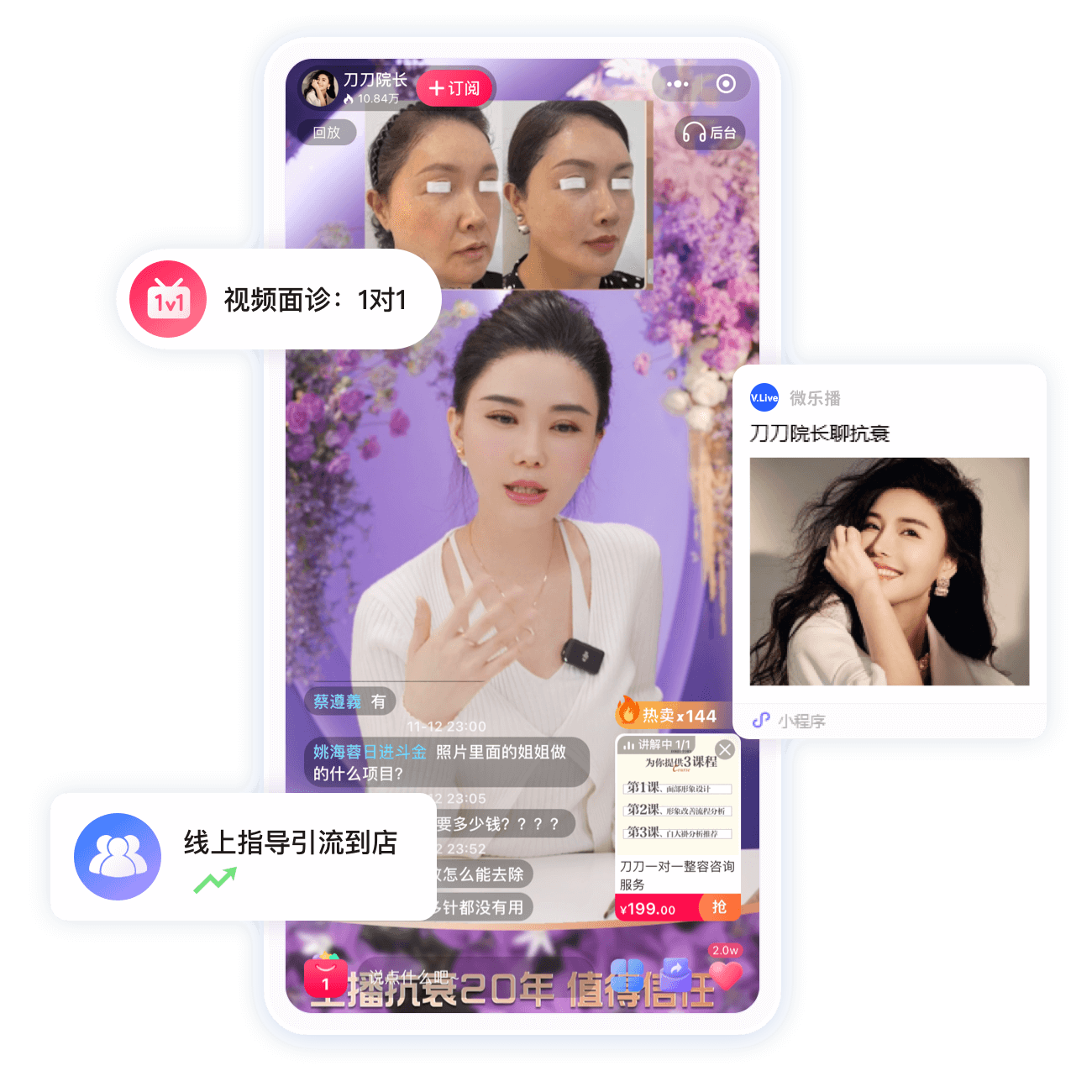 - 构建品牌视频门户,整合所有直播间资源,助力机构实现用户留存。