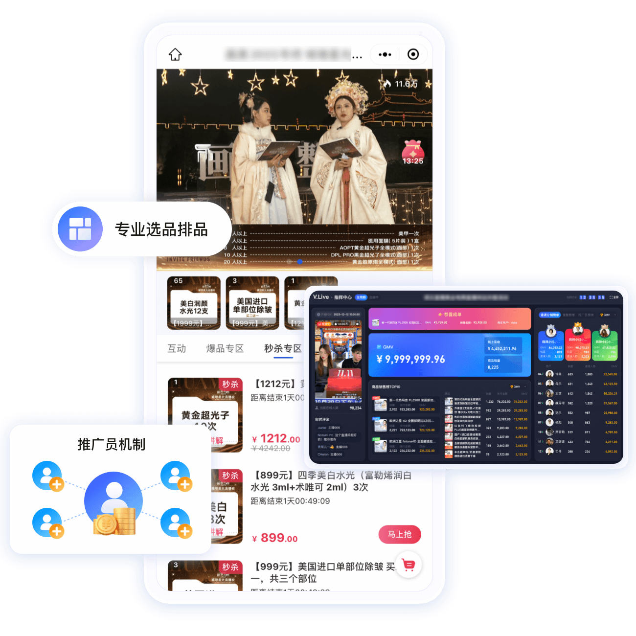 - 定制化菜单、个性化直播间主题设计、全方位塑造高端品牌形象。
