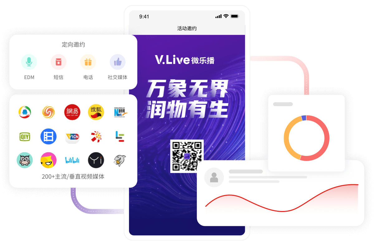 专注于线上峰会、线上发布会、企业年会等各类线下、线上活动直播服务,打造营销的第二现场