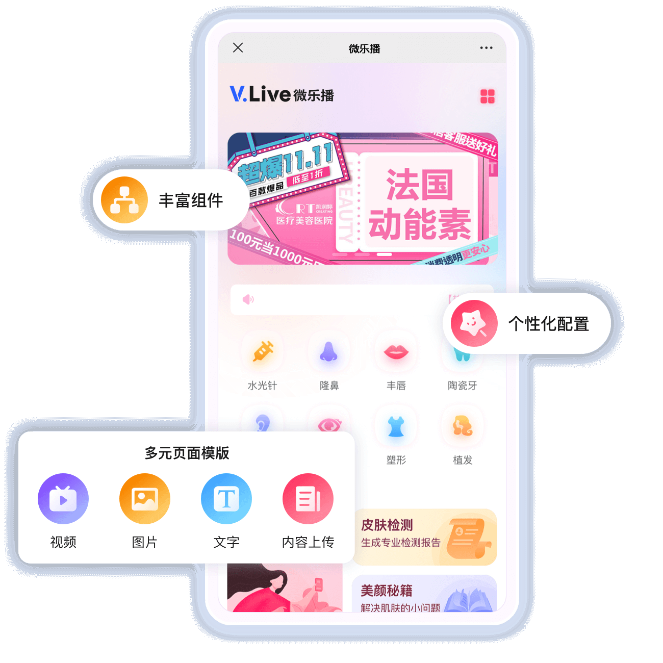 - 构建品牌视频门户,整合所有直播间资源,助力机构实现用户留存。
